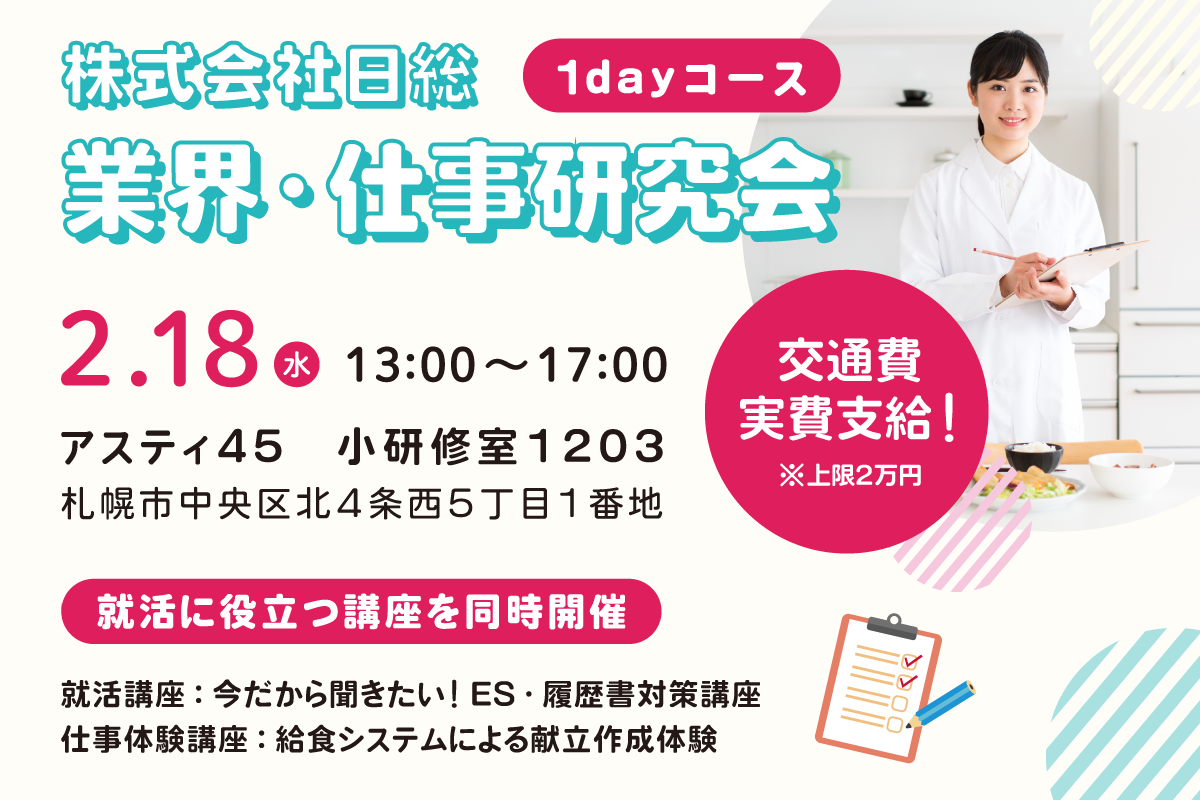 対面型 1day【給食の日総】1day業界・仕事研究会!就活に役立つ講座を同時開催!
