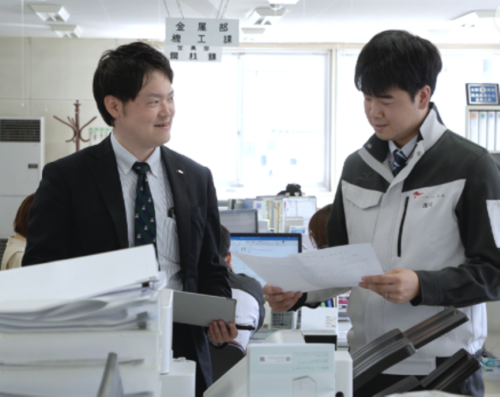 有り 【営業職】 ・4月~9月:鋼材センターへ配属 ・構内の作業員と一緒に作業していただき、当社が扱っている商 品を理解していただくとともに、お客様から注文をいただいてから納品されるまでの流れを学んでいただきます。 ・10月~3月:事務所へ配属 ・事務所に配属となって、お客様からの問い合わせに対する対応や、伝票入力を学んでいただきます。 |
